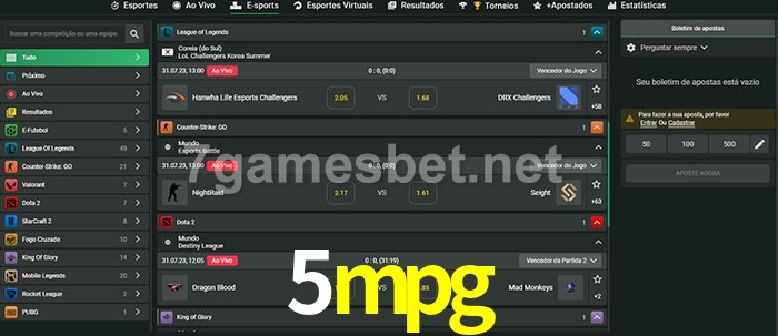 A aposta 5mpg oferece aos jogadores a experiência mais conveniente de apostas em eSports!